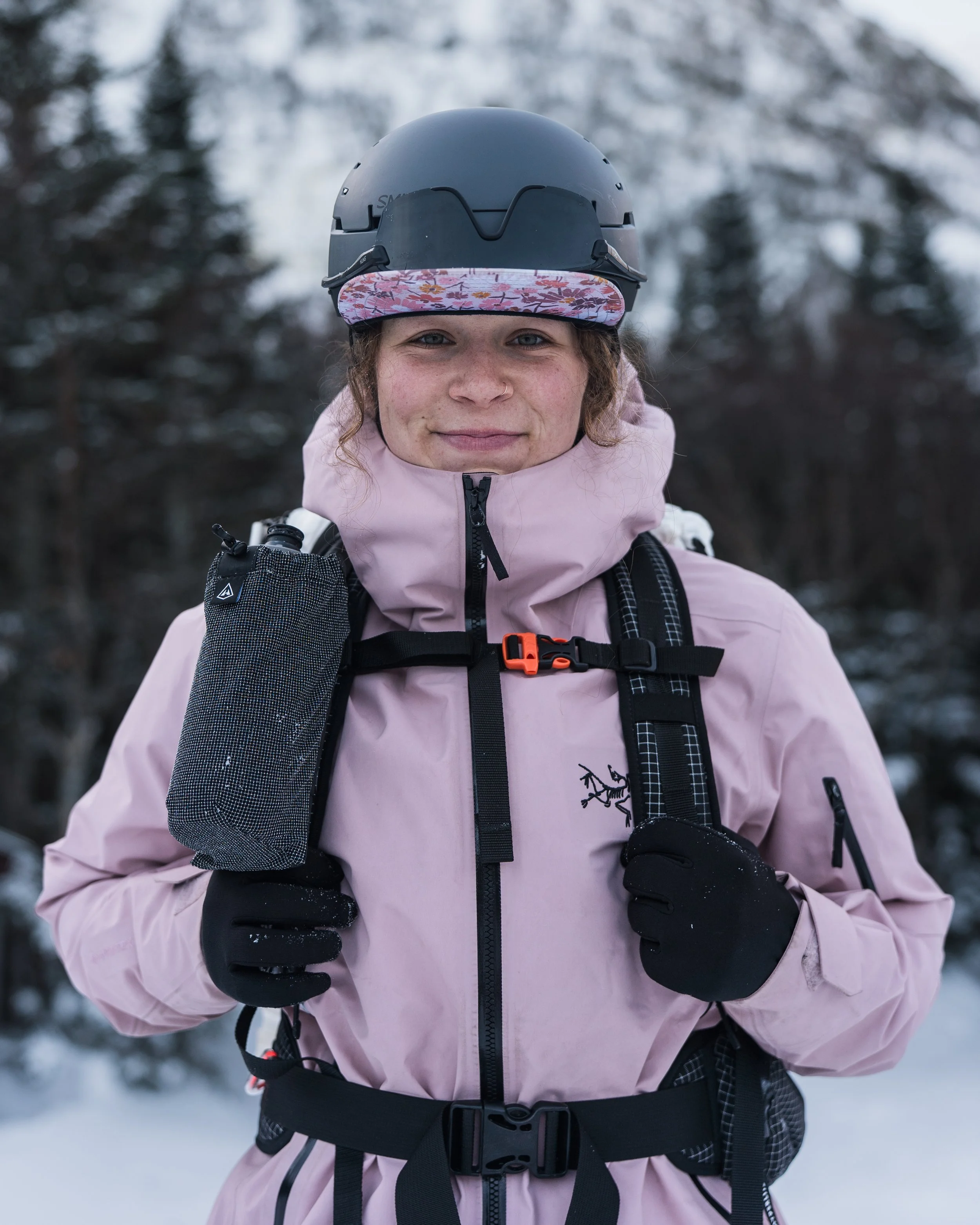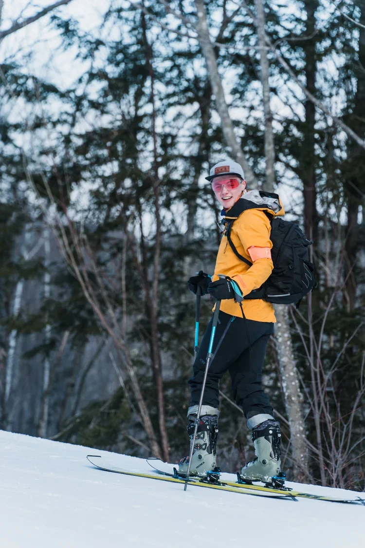 Meg grew up casually alpine and nordic skiing with her family. She started touring on telemark skis in 2021, but decided to leave dropping knees to the resort setting and got her first alpine touring setup in 2022.